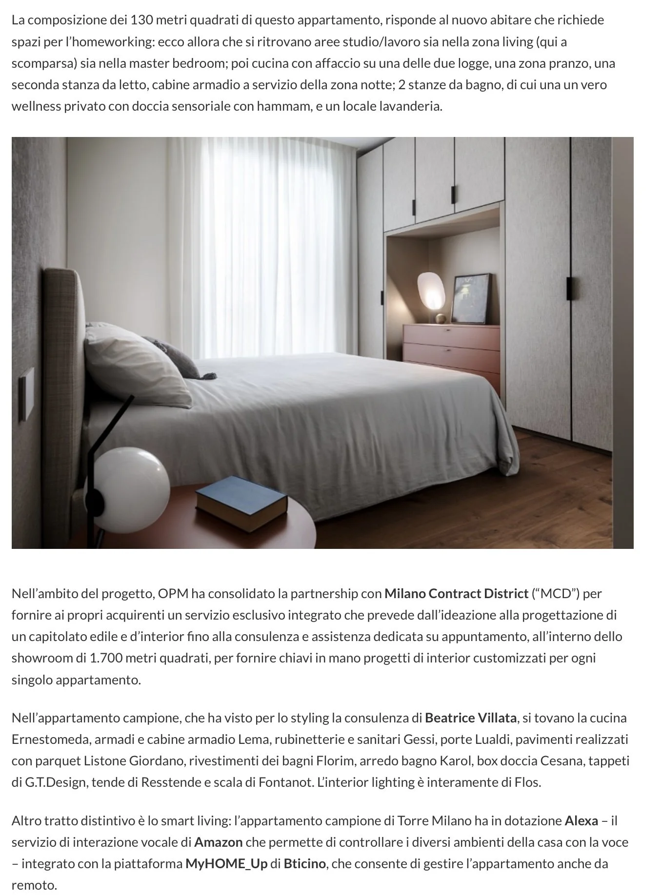 Ampie vetrate sul nuovo skyline milanese ma anche sulle icone architettoniche che da sempre fanno di Milano la più internazionale delle città italiane. È questo il panorama che si può ammirare dall’appartamento campione realizzato al dodicesimo piano di Torre Milano, l’edificio residenziale di 80 metri che, ancora in cantiere, ha appena raggiunto il tetto e che sarà terminato a fine 2022.