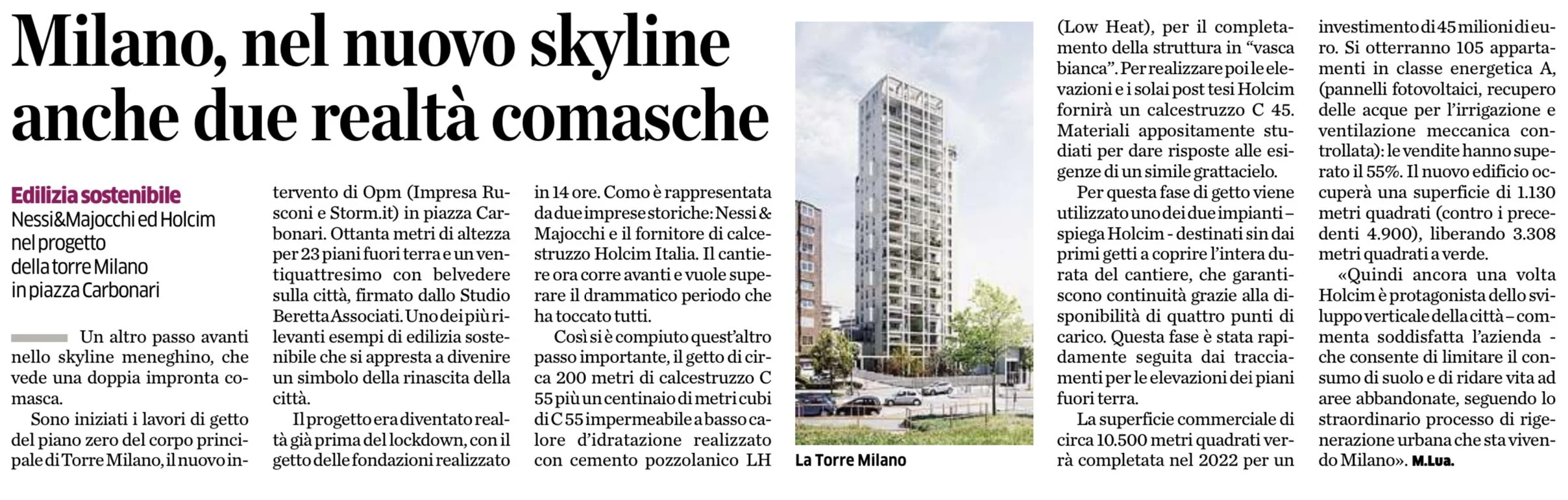 Edilizia sostenibile; Nessi&Majocchi ed Holcim nel progetto della torre Milano in piazza Carbonari